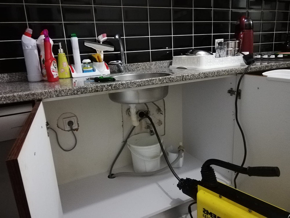 Yağ ve yemek artıkları mutfak hattında tabaka oluşturur. Robotla mutfak gideri açma ve hat içi temizleme yapılır; gerekiyorsa kamera ile nokta netleştirilir.